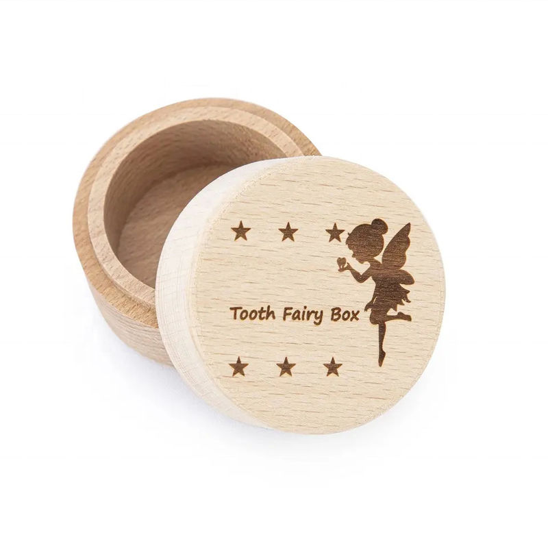Nome di prodotto La scatola di legno su ordinazione del supporto del fatato di dente ha personalizzato lo stoccaggio dei denti del ricordo del dente con la scatola del fatato di dente del bambino leggiadramente del cuscino dei denti del coperchio