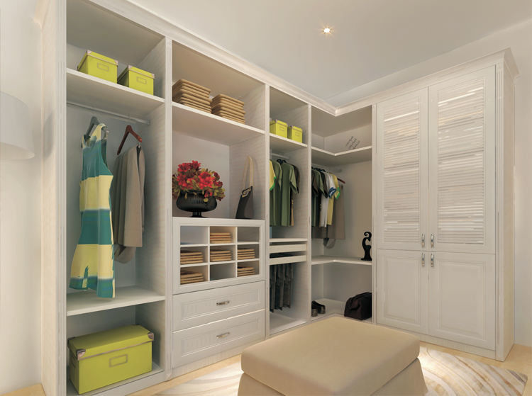Guardaroba di legno della mobilia del pannello della camera da letto delle persone senza appuntamento a forma di L di progettazione