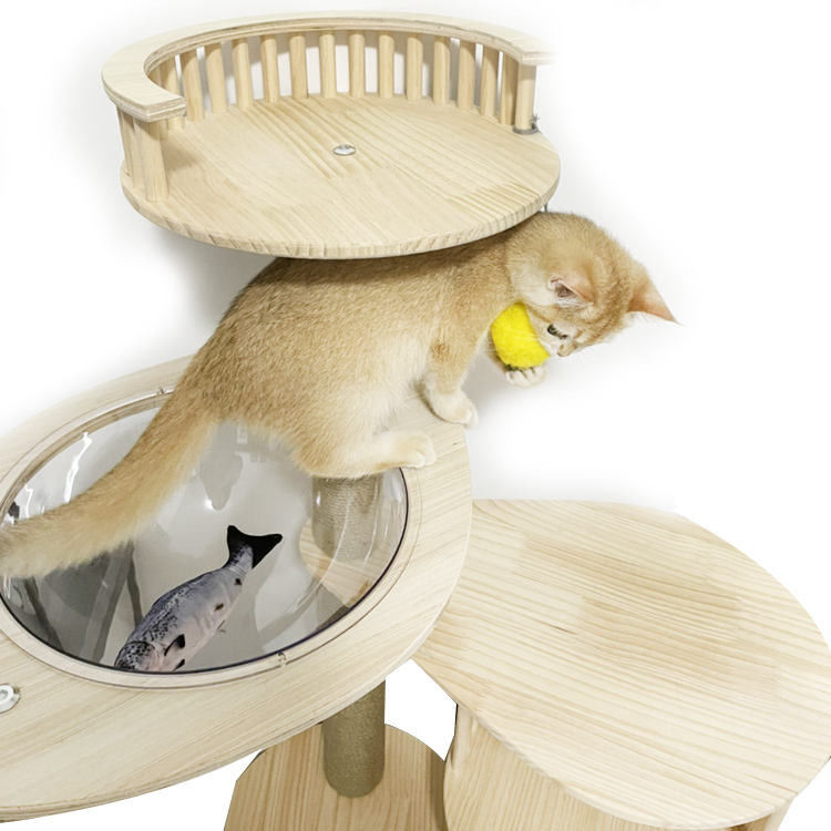 Albero di legno moderno giallo-chiaro di Scratcher della Camera della torre del gatto della mobilia dell'animale domestico di grande dimensione di lusso della fabbrica