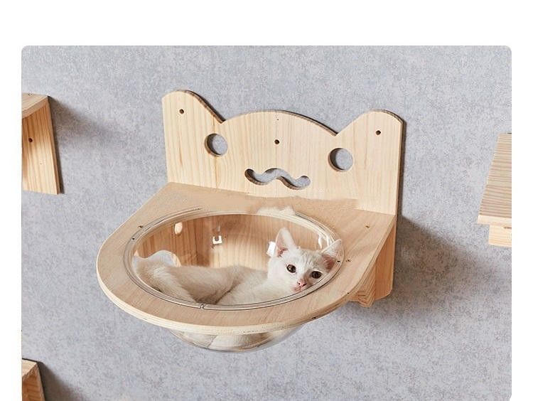 Progettazione dell'amaca: Le combinazioni fissate al muro di salita del gatto possono essere fornite delle progettazioni dell'amaca per fornire uno spazio di sosta comodo e privato. Le amache hanno solitamente materassi molli per fornire un ambiente caldo e comodo di sonno per i gatti.