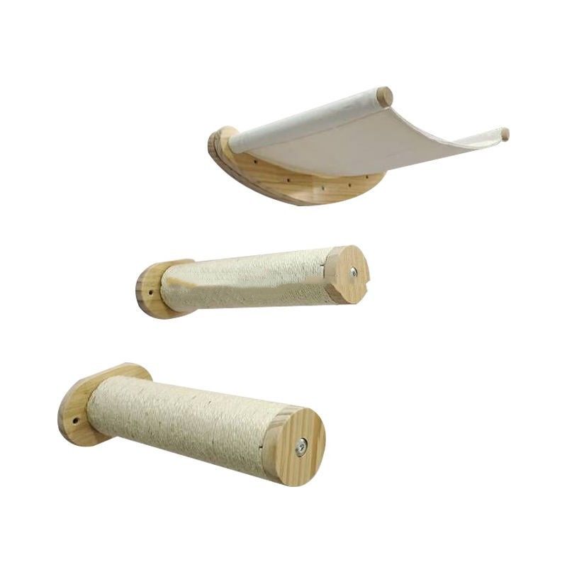 Bordo rampicante dell'artiglio o del palo: Le combinazioni fissate al muro della struttura di scalata del gatto possono essere fornite del bordo rampicante dell'artiglio o del palo per offrire più occasioni di esercizio e di spettacolo dei gatti. I pali ed i bordi rampicanti del graffio sono fatti solitamente di materiale di legno, aggiungendo al divertimento ed all'attività del gatto.