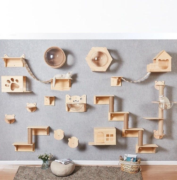Il supporto di legno Cat Climbing Kit della parete della mobilia dell'animale domestico dei prodotti è un innovatore, un'economia di spazio e un mobile di divertimento destinato specificamente affinchè i gatti fornisca uno spazio vitale versatile e divertente per il vostro gatto. Ora diamo un'occhiata alle suoi componenti differenti del prodotto e diversi scenari dell'applicazione: