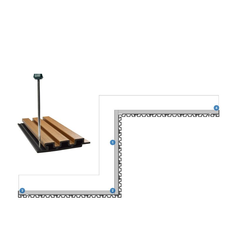 Griglia di WPC: La griglia di WPC è il materiale strutturale principale di questo pannello di parete, fatto del composto di plastica di legno (WPC), fatto della resina di legno della fibra e del polietilene o del polipropilene di alta qualità mista. Le griglie di WPC sono l'acqua, tempo e resistente UV, fornendo l'appoggio importante e la struttura per i pannelli di parete che possono essere utilizzati a lungo negli ambienti all'aperto senza danno.